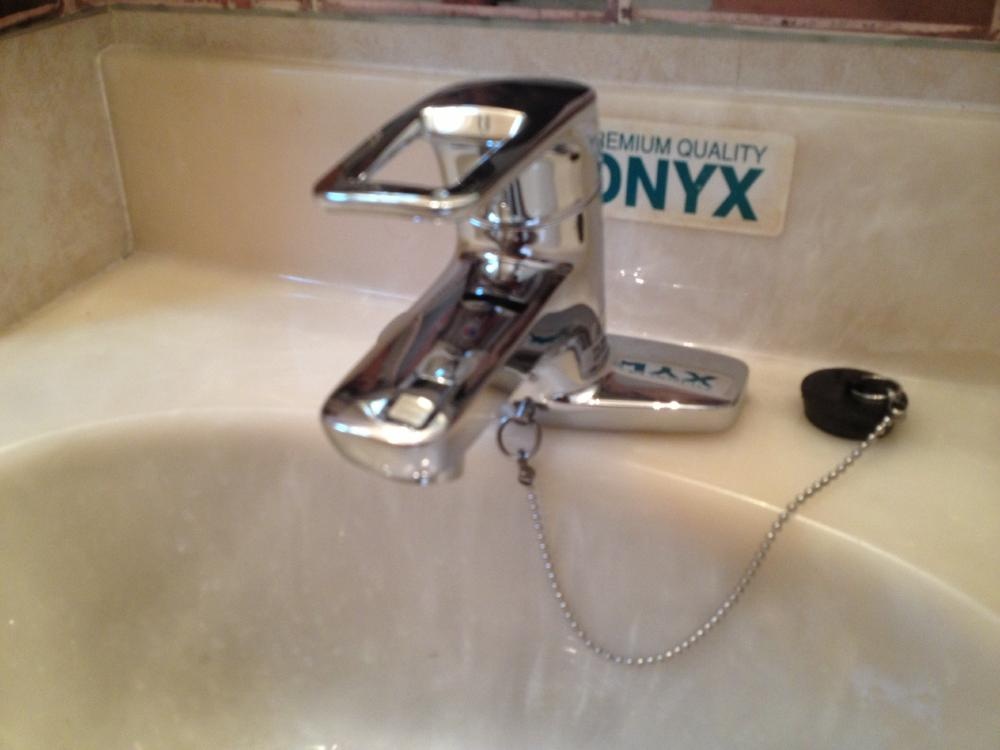 ↑ TOTO製の混合水栓 (定価¥29,000)を取付しました。サイズもピッタリです。